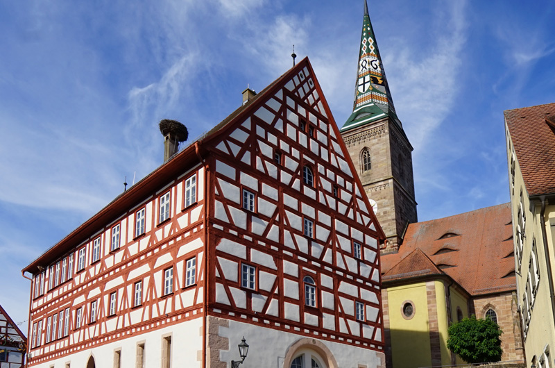 Das mittelfränkische Wolframs-Eschenbach ist Heimatort des Parzivaldichters Wolfram von Eschenbach. Der Ort gehörte über Jahrhunderte zum Besitz des Deutschen Ordens, der das einstige Dorf in eine Stadt verwandelte und vor allem architektonisch stark beeinflusste. Bis heute zählt Wolframs-Eschenbach mit seinen 3300 Einwohnern zu einer Reihe von fränkischen Städten, deren Stadtmauerring noch komplett erhalten und deren Kern von Mittelalter und Renaissance geprägt ist.